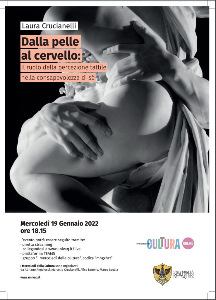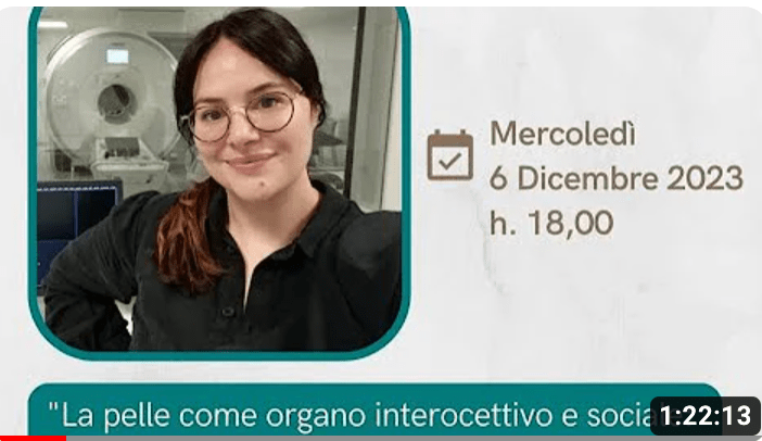 Il 6 dicembre, ho tenuto un webinar in italiano dal titolo “La pelle come organo interocettivo e sociale: Tatto affettivo, temperatura, e sé corporeo” organizzato da Accademia Mibes. Trovate la registrazione qui!